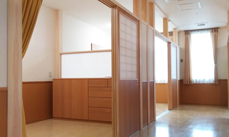 | 居 室 | プライバシーに配慮した個室を用意しています。性別、性格、希望を考慮した上で、過ごしやすい部屋割をご提案させていただきます。 |